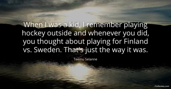 Selanne, Teemu. "When I was a kid, I remember playing hockey outside and whenever you did, you thought about playing for Finland vs. Sweden. That's just the way it was." FixQuotes. January 16, 2026. https://fixquotes.com/quotes/when-i-was-a-kid-i-remember-playing-hockey-123569/.
