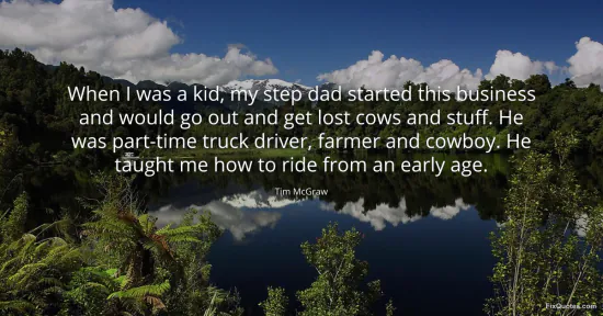 McGraw, Tim. "When I was a kid, my step dad started this business and would go out and get lost cows and stuff. He was part-time truck driver, farmer and cowboy. He taught me how to ride from an early age." FixQuotes. January 16, 2026. https://fixquotes.com/quotes/when-i-was-a-kid-my-step-dad-started-this-91177/.