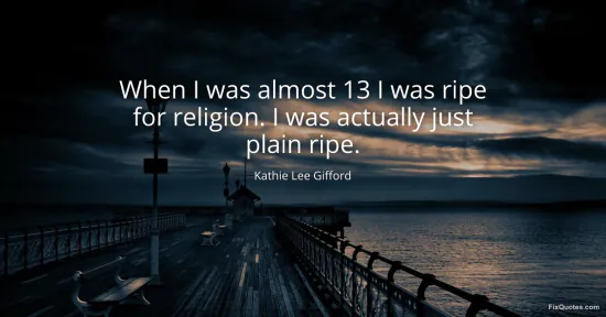 Gifford, Kathie Lee. (2026, January 17). When I was almost 13 I was ripe for religion. I was actually just plain ripe. FixQuotes. https://fixquotes.com/quotes/when-i-was-almost-13-i-was-ripe-for-religion-i-73844/