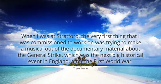 Nunn, Trevor. "When I was at Stratford, the very first thing that I was commissioned to work on was trying to make a musical out of the documentary material about the General Strike, which was the next big historical event in England, after the First World War." FixQuotes. January 18, 2026. https://fixquotes.com/quotes/when-i-was-at-stratford-the-very-first-thing-that-11603/.