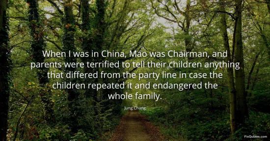Chang, Jung. (2026, January 16). When I was in China, Mao was Chairman, and parents were terrified to tell their children anything that differed from the party line in case the children repeated it and endangered the whole family. FixQuotes. https://fixquotes.com/quotes/when-i-was-in-china-mao-was-chairman-and-parents-126376/