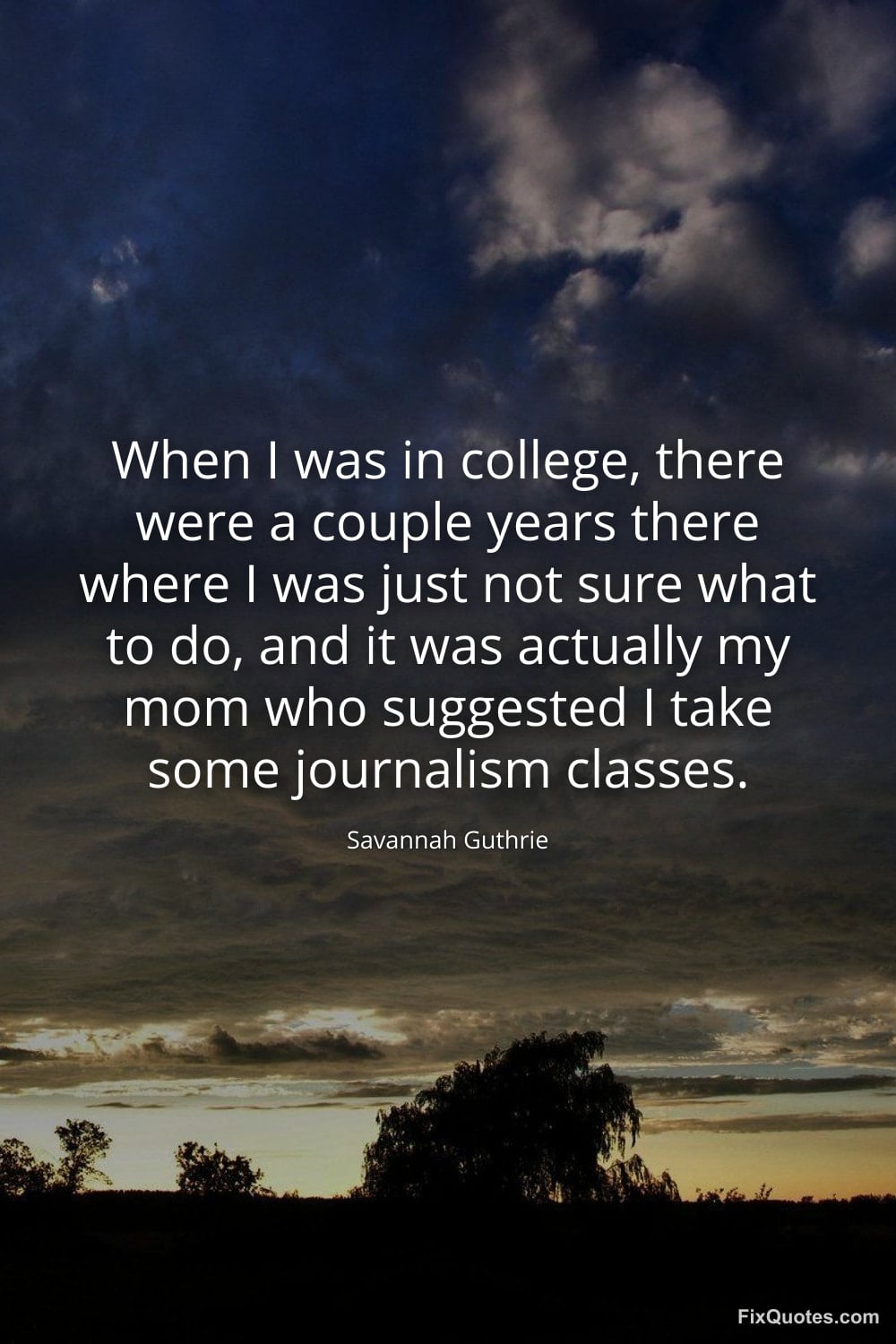 Guthrie, Savannah. "When I was in college, there were a couple years there where I was just not sure what to do, and it was actually my mom who suggested I take some journalism classes." FixQuotes. February 11, 2026. https://fixquotes.com/quotes/when-i-was-in-college-there-were-a-couple-years-185272/.