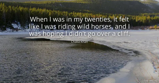Khan, Chaka. "When I was in my twenties, it felt like I was riding wild horses, and I was hoping I didn't go over a cliff." FixQuotes. January 17, 2026. https://fixquotes.com/quotes/when-i-was-in-my-twenties-it-felt-like-i-was-41107/.