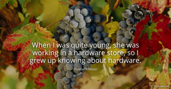 Moon, Elizabeth. (2026, January 17). When I was quite young, she was working in a hardware store, so I grew up knowing about hardware. FixQuotes. https://fixquotes.com/quotes/when-i-was-quite-young-she-was-working-in-a-61224/