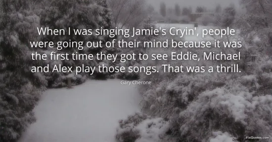 Cherone, Gary. (2026, January 17). When I was singing Jamie's Cryin', people were going out of their mind because it was the first time they got to see Eddie, Michael and Alex play those songs. That was a thrill. FixQuotes. https://fixquotes.com/quotes/when-i-was-singing-jamies-cryin-people-were-going-61407/
