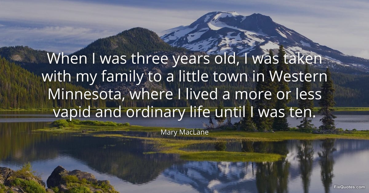 MacLane, Mary. (2026, February 17). When I was three years old, I was taken with my family to a little town in Western Minnesota, where I lived a more or less vapid and ordinary life until I was ten. FixQuotes. https://fixquotes.com/quotes/when-i-was-three-years-old-i-was-taken-with-my-99533/