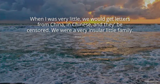Lin, Maya. (2026, January 18). When I was very little, we would get letters from China, in Chinese, and they' be censored. We were a very insular little family. FixQuotes. https://fixquotes.com/quotes/when-i-was-very-little-we-would-get-letters-from-12659/