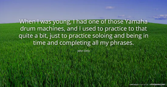 Otto, John. "When I was young, I had one of those Yamaha drum machines, and I used to practice to that quite a bit, just to practice soloing and being in time and completing all my phrases." FixQuotes. January 15, 2026. https://fixquotes.com/quotes/when-i-was-young-i-had-one-of-those-yamaha-drum-169508/.