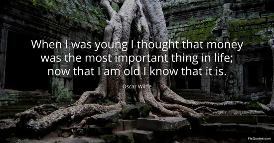 Wilde, Oscar. (2026, January 15). When I was young I thought that money was the most important thing in life; now that I am old I know that it is. FixQuotes. https://fixquotes.com/quotes/when-i-was-young-i-thought-that-money-was-the-26977/