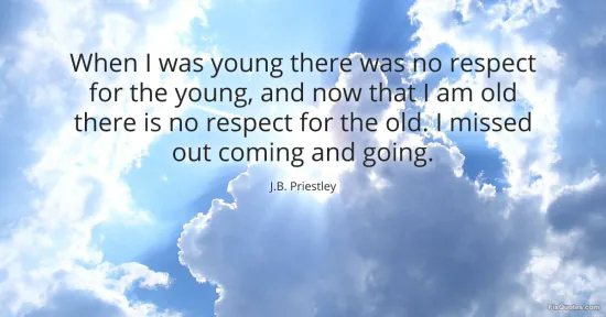Priestley, J.B. "When I was young there was no respect for the young, and now that I am old there is no respect for the old. I missed out coming and going." FixQuotes. January 18, 2026. https://fixquotes.com/quotes/when-i-was-young-there-was-no-respect-for-the-12892/.
