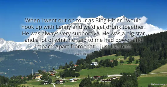 Ferguson, Craig. "When I went out on tour as Bing Hitler I would hook up with Lenny and we'd get drunk together. He was always very supportive. He was a big star and a lot of what he said to me had power and impact. Apart from that, I just like him." FixQuotes. January 16, 2026. https://fixquotes.com/quotes/when-i-went-out-on-tour-as-bing-hitler-i-would-119571/.