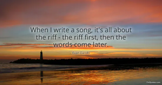 Dando, Evan. "When I write a song, it's all about the riff - the riff first, then the words come later." FixQuotes. January 17, 2026. https://fixquotes.com/quotes/when-i-write-a-song-its-all-about-the-riff-the-52751/.