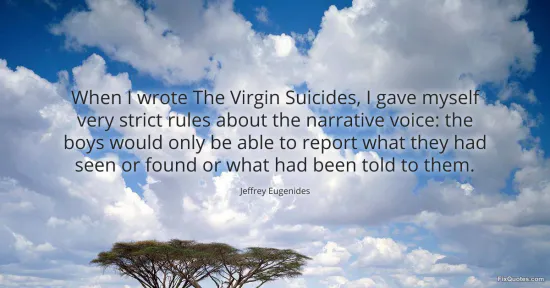 "When I wrote The Virgin Suicides, I gave myself very strict rules about the narrative voice: the boys would only be able to report what they had seen or found or what had been told to them"
