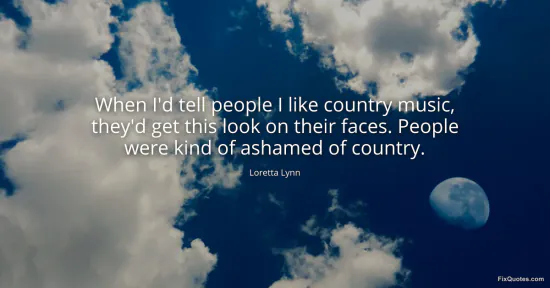 Lynn, Loretta. (2026, February 16). When I'd tell people I like country music, they'd get this look on their faces. People were kind of ashamed of country. FixQuotes. https://fixquotes.com/quotes/when-id-tell-people-i-like-country-music-theyd-152735/