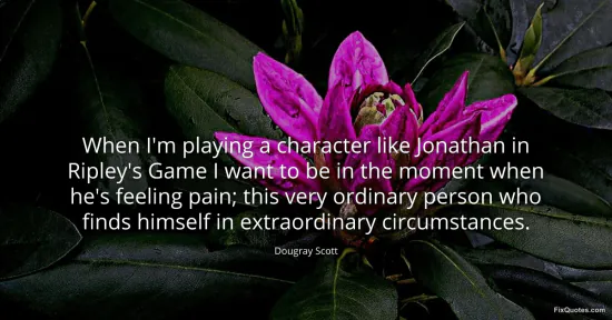 Scott, Dougray. "When I'm playing a character like Jonathan in Ripley's Game I want to be in the moment when he's feeling pain; this very ordinary person who finds himself in extraordinary circumstances." FixQuotes. January 17, 2026. https://fixquotes.com/quotes/when-im-playing-a-character-like-jonathan-in-55017/.