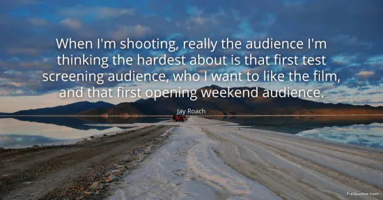 Roach, Jay. (2026, February 19). When I'm shooting, really the audience I'm thinking the hardest about is that first test screening audience, who I want to like the film, and that first opening weekend audience. FixQuotes. https://fixquotes.com/quotes/when-im-shooting-really-the-audience-im-thinking-55779/