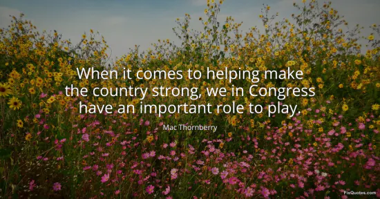 A politician doesn’t say “we’ll make the country strong”; he says “when it comes to helping make the country strong,” and instantly the real work begins in the prepositional haze. Mac Thornberry’s line is classic institutional self-justification: a modest-sounding claim that quietly insists on relevance. “Helping” lowers the bar from responsibility to participation, while still allowing Congress to take credit for any outcome. “Strong” is the most elastic word in American political vocabulary, a catch-all that can mean military readiness, economic growth, border control, social cohesion, or simply the feeling that the right people are in charge. That ambiguity isn’t a flaw; it’s the feature that lets the sentence travel across committees, cable hits, and press releases without ever being pinned down.