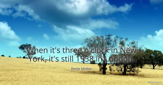 Midler, Bette. (2026, February 8). When it's three o'clock in New York, it's still 1938 in London. FixQuotes. https://fixquotes.com/quotes/when-its-three-oclock-in-new-york-its-still-1938-43515/