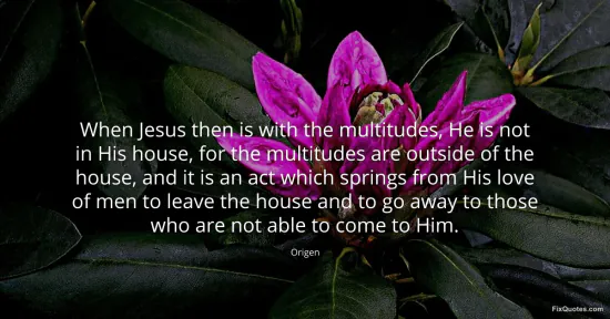 Origen. (2026, January 16). When Jesus then is with the multitudes, He is not in His house, for the multitudes are outside of the house, and it is an act which springs from His love of men to leave the house and to go away to those who are not able to come to Him. FixQuotes. https://fixquotes.com/quotes/when-jesus-then-is-with-the-multitudes-he-is-not-93677/