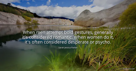 Parker, Sarah Jessica. "When men attempt bold gestures, generally it's considered romantic. When women do it, it's often considered desperate or psycho." FixQuotes. January 17, 2026. https://fixquotes.com/quotes/when-men-attempt-bold-gestures-generally-its-64706/.