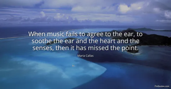 Callas, Maria. (2026, January 16). When music fails to agree to the ear, to soothe the ear and the heart and the senses, then it has missed the point. FixQuotes. https://fixquotes.com/quotes/when-music-fails-to-agree-to-the-ear-to-soothe-88461/