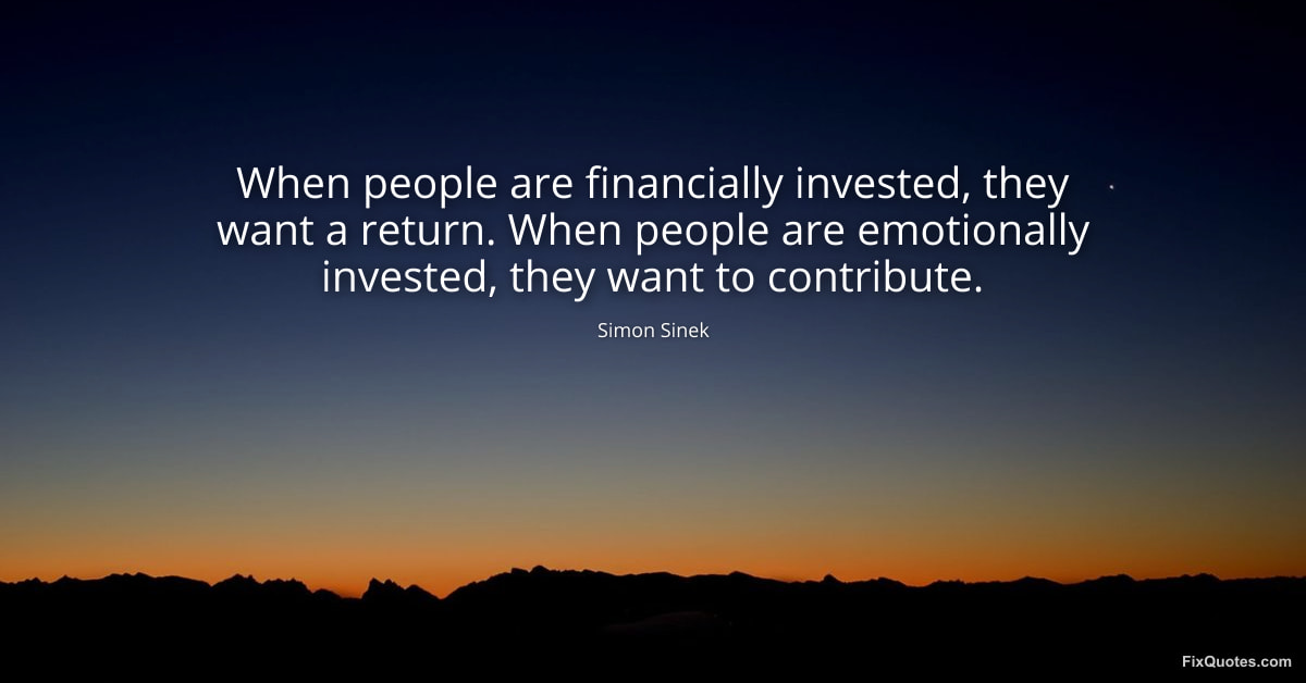 Sinek, Simon. "When people are financially invested, they want a return. When people are emotionally invested, they want to contribute." FixQuotes. January 24, 2026. https://fixquotes.com/quotes/when-people-are-financially-invested-they-want-a-184100/.