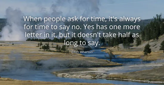 Wharton, Edith. (2026, January 15). When people ask for time, it's always for time to say no. Yes has one more letter in it, but it doesn't take half as long to say. FixQuotes. https://fixquotes.com/quotes/when-people-ask-for-time-its-always-for-time-to-143280/