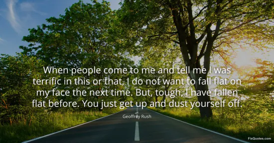 Rush, Geoffrey. (2026, January 17). When people come to me and tell me I was terrific in this or that, I do not want to fall flat on my face the next time. But, tough, I have fallen flat before. You just get up and dust yourself off. FixQuotes. https://fixquotes.com/quotes/when-people-come-to-me-and-tell-me-i-was-terrific-58766/