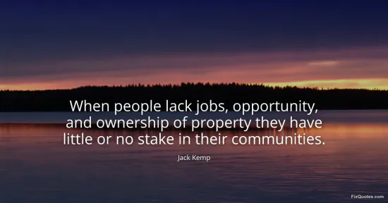 Kemp, Jack. (2026, January 16). When people lack jobs, opportunity, and ownership of property they have little or no stake in their communities. FixQuotes. https://fixquotes.com/quotes/when-people-lack-jobs-opportunity-and-ownership-82946/