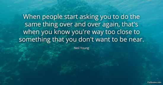 Young, Neil. (2026, January 16). When people start asking you to do the same thing over and over again, that's when you know you're way too close to something that you don't want to be near. FixQuotes. https://fixquotes.com/quotes/when-people-start-asking-you-to-do-the-same-thing-89391/