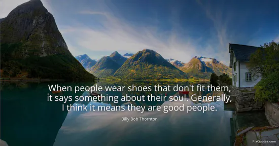 Thornton, Billy Bob. (2026, January 17). When people wear shoes that don't fit them, it says something about their soul. Generally, I think it means they are good people. FixQuotes. https://fixquotes.com/quotes/when-people-wear-shoes-that-dont-fit-them-it-says-39178/