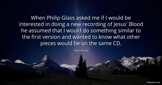 Bryars, Gavin. "When Philip Glass asked me if I would be interested in doing a new recording of Jesus' Blood he assumed that I would do something similar to the first version and wanted to know what other pieces would be on the same CD." FixQuotes. January 17, 2026. https://fixquotes.com/quotes/when-philip-glass-asked-me-if-i-would-be-66157/.