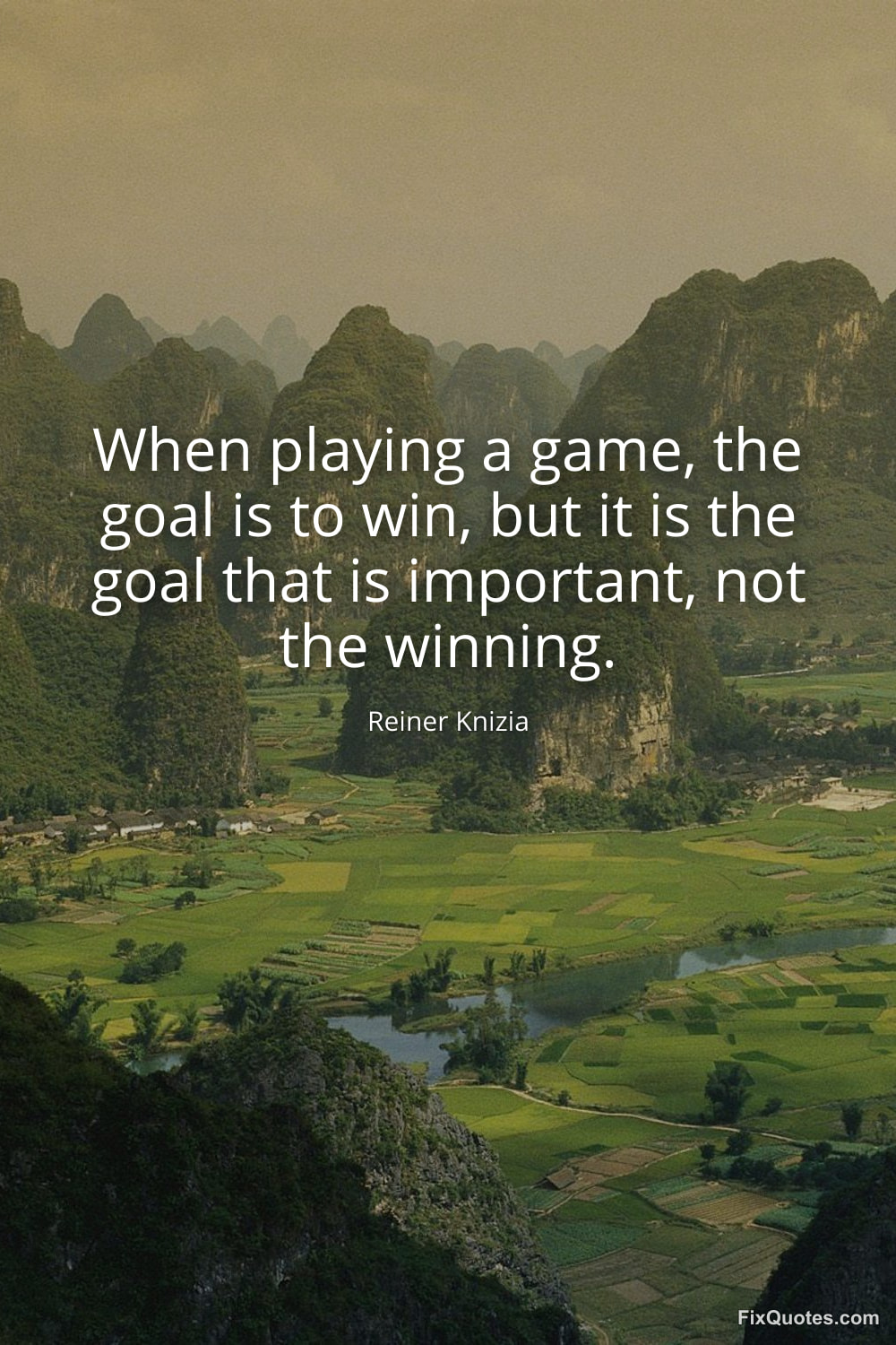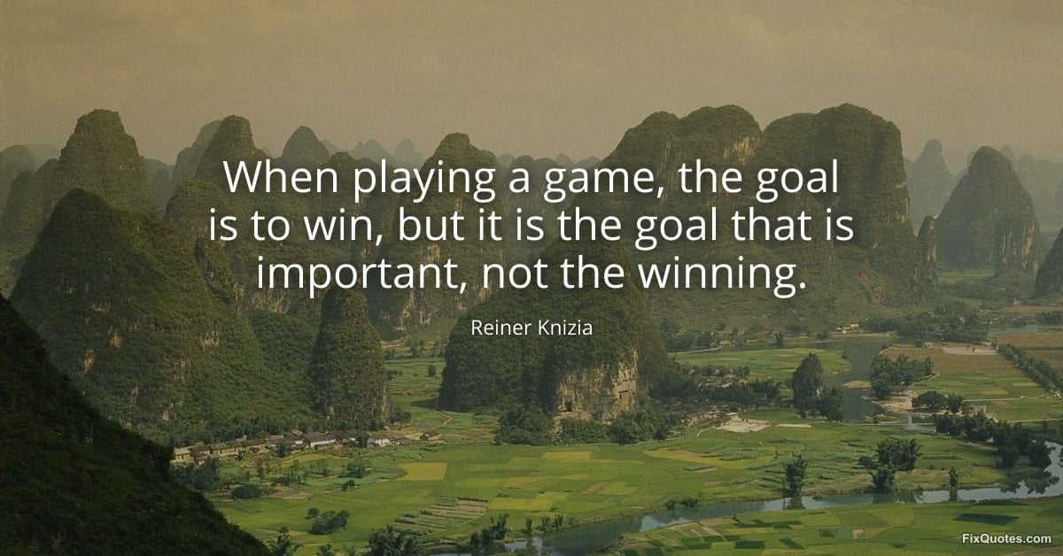 Knizia, Reiner. (2026, January 19). When playing a game, the goal is to win, but it is the goal that is important, not the winning. FixQuotes. https://fixquotes.com/quotes/when-playing-a-game-the-goal-is-to-win-but-it-is-184060/