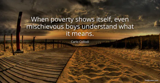Collodi, Carlo. (2026, January 18). When poverty shows itself, even mischievous boys understand what it means. FixQuotes. https://fixquotes.com/quotes/when-poverty-shows-itself-even-mischievous-boys-9305/
