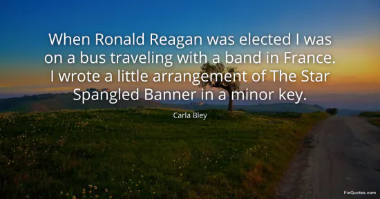 Bley, Carla. (2026, January 16). When Ronald Reagan was elected I was on a bus traveling with a band in France. I wrote a little arrangement of The Star Spangled Banner in a minor key. FixQuotes. https://fixquotes.com/quotes/when-ronald-reagan-was-elected-i-was-on-a-bus-109669/