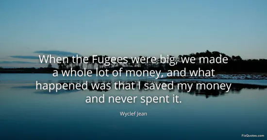 Jean, Wyclef. (2026, January 16). When the Fugees were big, we made a whole lot of money, and what happened was that I saved my money and never spent it. FixQuotes. https://fixquotes.com/quotes/when-the-fugees-were-big-we-made-a-whole-lot-of-114059/