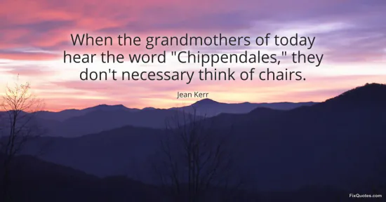 Kerr, Jean. (2026, January 18). When the grandmothers of today hear the word "Chippendales," they don't necessary think of chairs. FixQuotes. https://fixquotes.com/quotes/when-the-grandmothers-of-today-hear-the-word-6765/