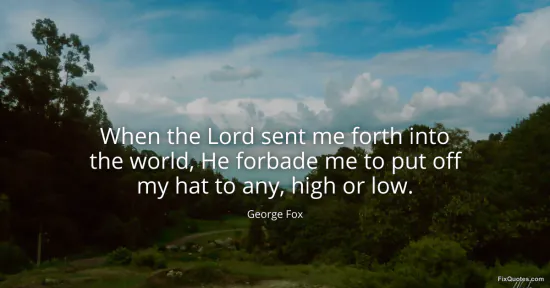 "When the Lord sent me forth into the world, He forbade me to put off my hat to any, high or low." FixQuotes, 16 Jan. 2026, https://fixquotes.com/quotes/when-the-lord-sent-me-forth-into-the-world-he-112082/. Accessed 13 Feb. 2026.