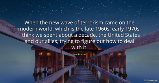Bremer, Paul. (2026, January 16). When the new wave of terrorism came on the modern world, which is the late 1960s, early 1970s, I think we spent about a decade, the United States and our allies, trying to figure out how to deal with it. FixQuotes. https://fixquotes.com/quotes/when-the-new-wave-of-terrorism-came-on-the-modern-84493/