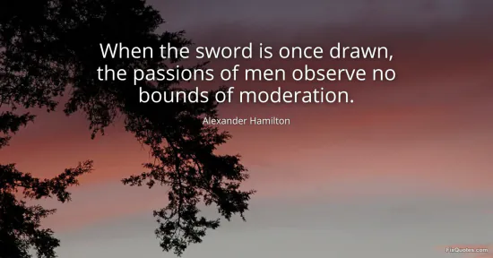 Hamilton, Alexander. (2026, January 15). When the sword is once drawn, the passions of men observe no bounds of moderation. FixQuotes. https://fixquotes.com/quotes/when-the-sword-is-once-drawn-the-passions-of-men-28164/