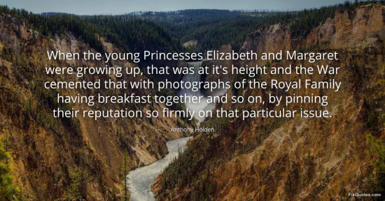 Holden, Anthony. "When the young Princesses Elizabeth and Margaret were growing up, that was at it's height and the War cemented that with photographs of the Royal Family having breakfast together and so on, by pinning their reputation so firmly on that particular issue." FixQuotes. January 17, 2026. https://fixquotes.com/quotes/when-the-young-princesses-elizabeth-and-margaret-42075/.