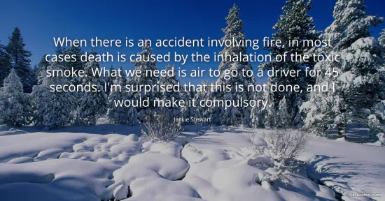 Stewart, Jackie. (2026, January 15). When there is an accident involving fire, in most cases death is caused by the inhalation of the toxic smoke. What we need is air to go to a driver for 45 seconds. I'm surprised that this is not done, and I would make it compulsory. FixQuotes. https://fixquotes.com/quotes/when-there-is-an-accident-involving-fire-in-most-149200/