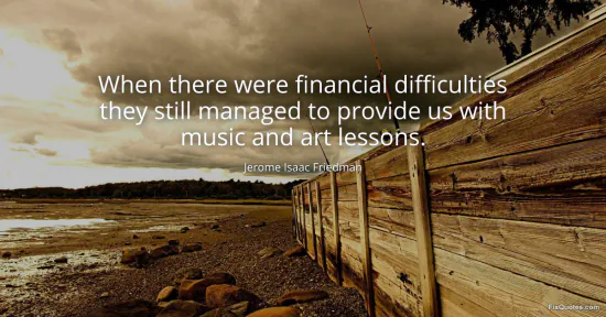 Friedman, Jerome Isaac. (2026, January 16). When there were financial difficulties they still managed to provide us with music and art lessons. FixQuotes. https://fixquotes.com/quotes/when-there-were-financial-difficulties-they-still-99133/