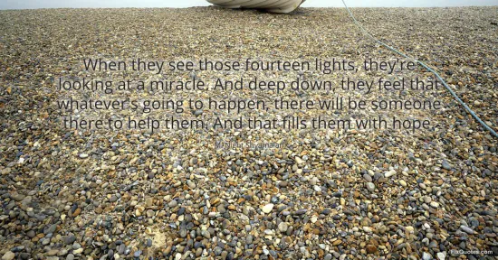 "When they see those fourteen lights, they're looking at a miracle. And deep down, they feel that whatever's going to happen, there will be someone there to help them. And that fills them with hope." FixQuotes, 15 Jan. 2026, https://fixquotes.com/quotes/when-they-see-those-fourteen-lights-theyre-146832/. Accessed 12 Feb. 2026.