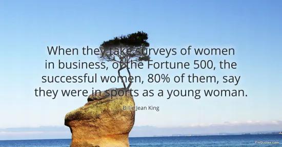 King, Billie Jean. (2026, January 17). When they take surveys of women in business, of the Fortune 500, the successful women, 80% of them, say they were in sports as a young woman. FixQuotes. https://fixquotes.com/quotes/when-they-take-surveys-of-women-in-business-of-39836/