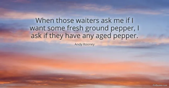 Rooney, Andy. "When those waiters ask me if I want some fresh ground pepper, I ask if they have any aged pepper." FixQuotes. January 18, 2026. https://fixquotes.com/quotes/when-those-waiters-ask-me-if-i-want-some-fresh-15238/.