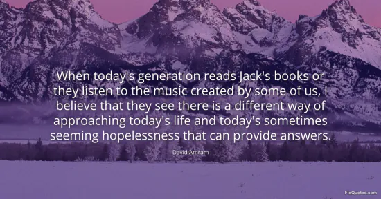 Amram, David. (2026, January 17). When today's generation reads Jack's books or they listen to the music created by some of us, I believe that they see there is a different way of approaching today's life and today's sometimes seeming hopelessness that can provide answers. FixQuotes. https://fixquotes.com/quotes/when-todays-generation-reads-jacks-books-or-they-52308/