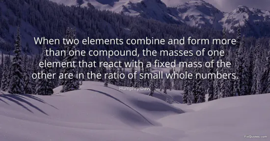 Davy, Humphry. (2026, January 16). When two elements combine and form more than one compound, the masses of one element that react with a fixed mass of the other are in the ratio of small whole numbers. FixQuotes. https://fixquotes.com/quotes/when-two-elements-combine-and-form-more-than-one-112368/