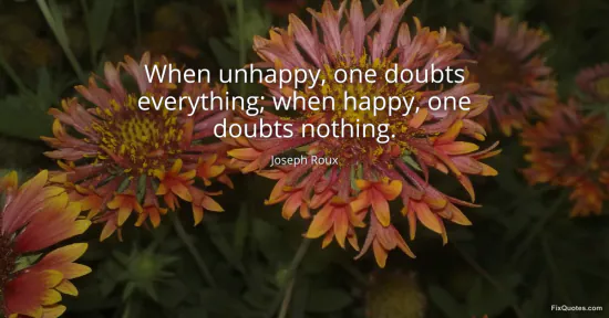 Roux, Joseph. "When unhappy, one doubts everything; when happy, one doubts nothing." FixQuotes. January 16, 2026. https://fixquotes.com/quotes/when-unhappy-one-doubts-everything-when-happy-one-103681/.