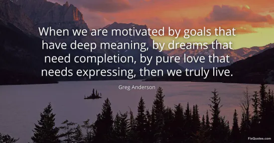 Anderson, Greg. (2026, January 16). When we are motivated by goals that have deep meaning, by dreams that need completion, by pure love that needs expressing, then we truly live. FixQuotes. https://fixquotes.com/quotes/when-we-are-motivated-by-goals-that-have-deep-111939/